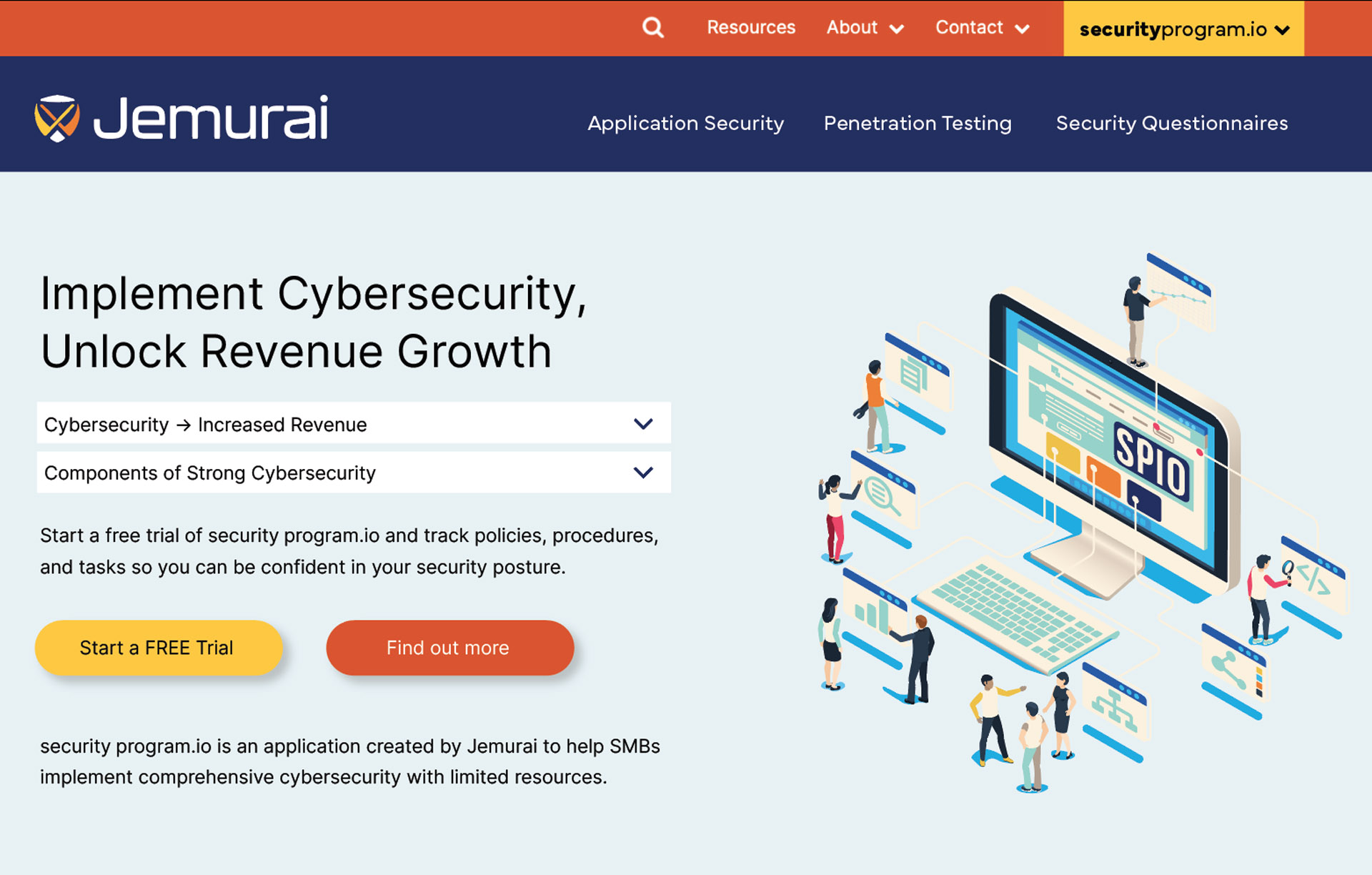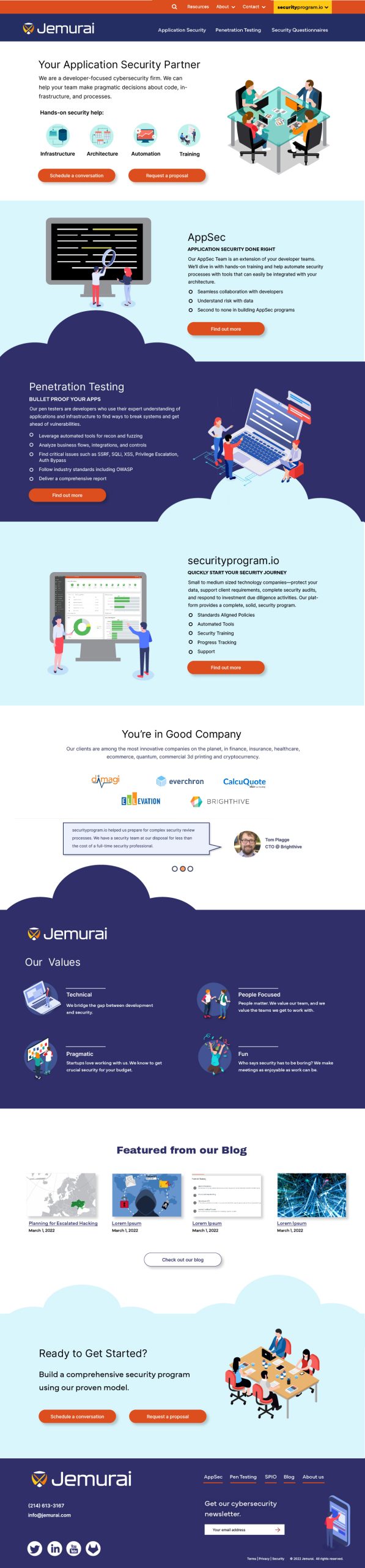 We provide content strategy, a WordPress marketing website, marketing campaigns, and product development for Jemurai, a cybersecurity company that delivers standards and audit-ready programs for small and medium size companies.