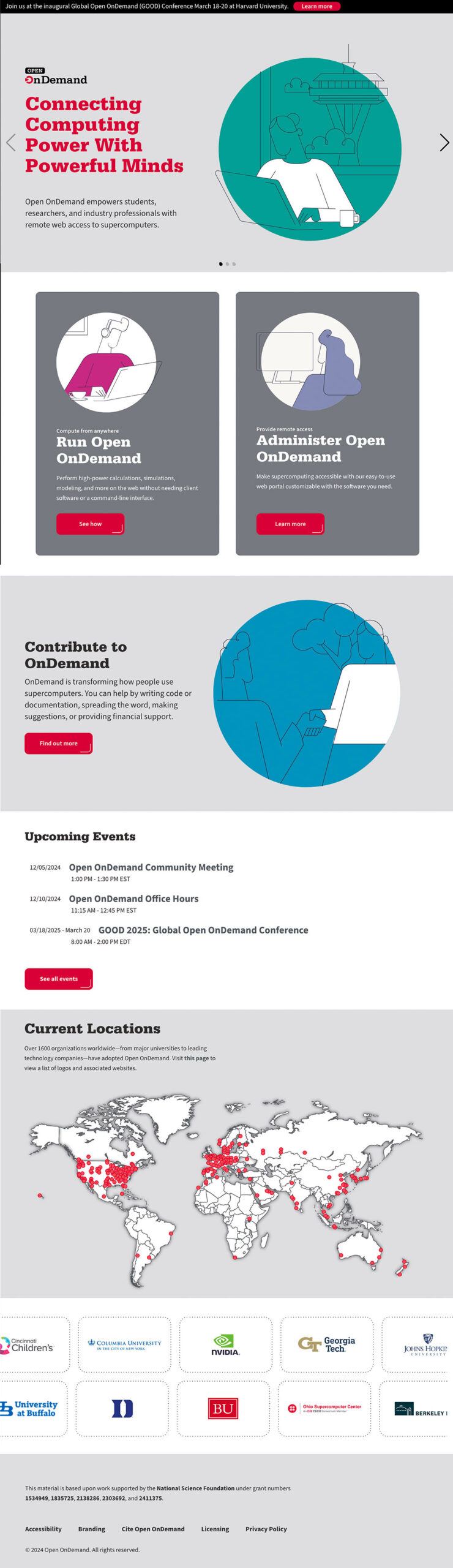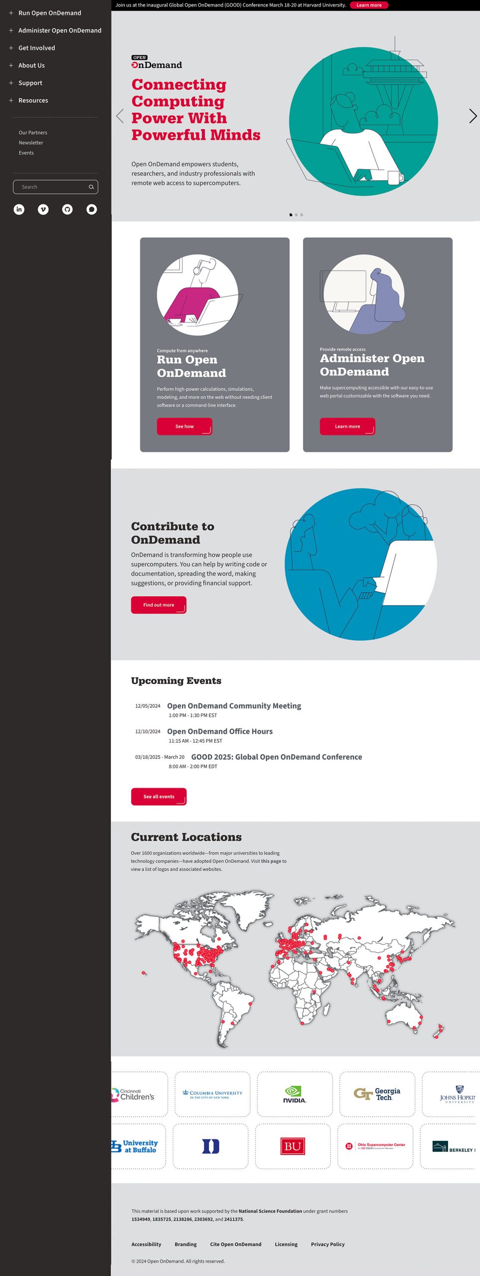 We refreshed the Open OnDemand website to improve alignment with their branding and to enhance the user experience. This update included implementing GitHub Actions to automate the Pantheon workflow, streamlining navigation for easier access to key features, and adding new functionality to support and engage their community.